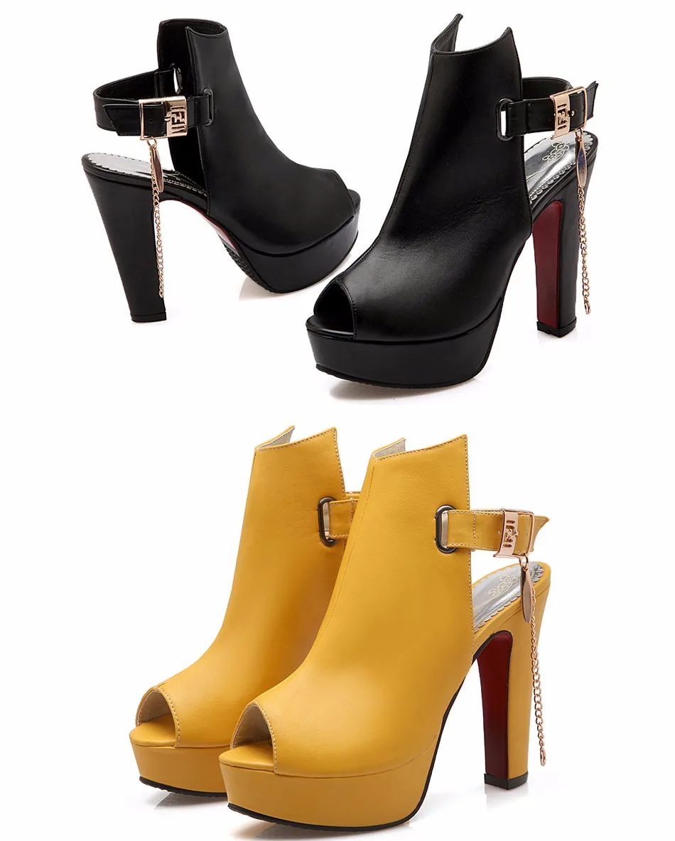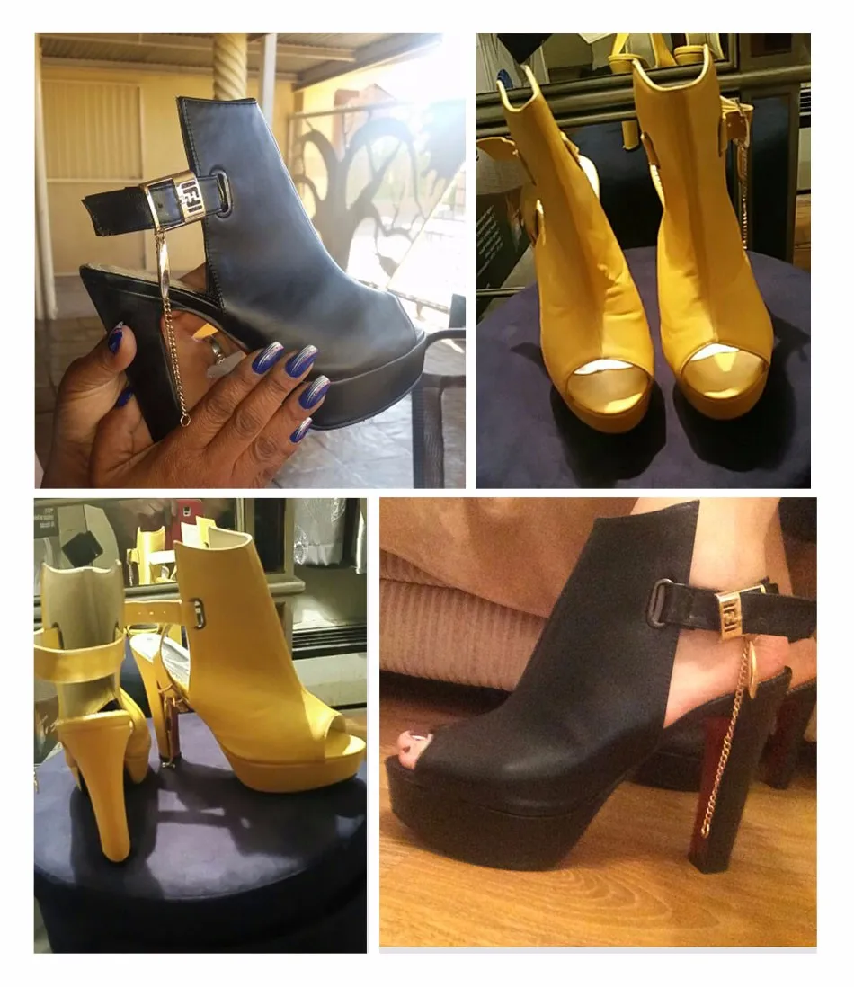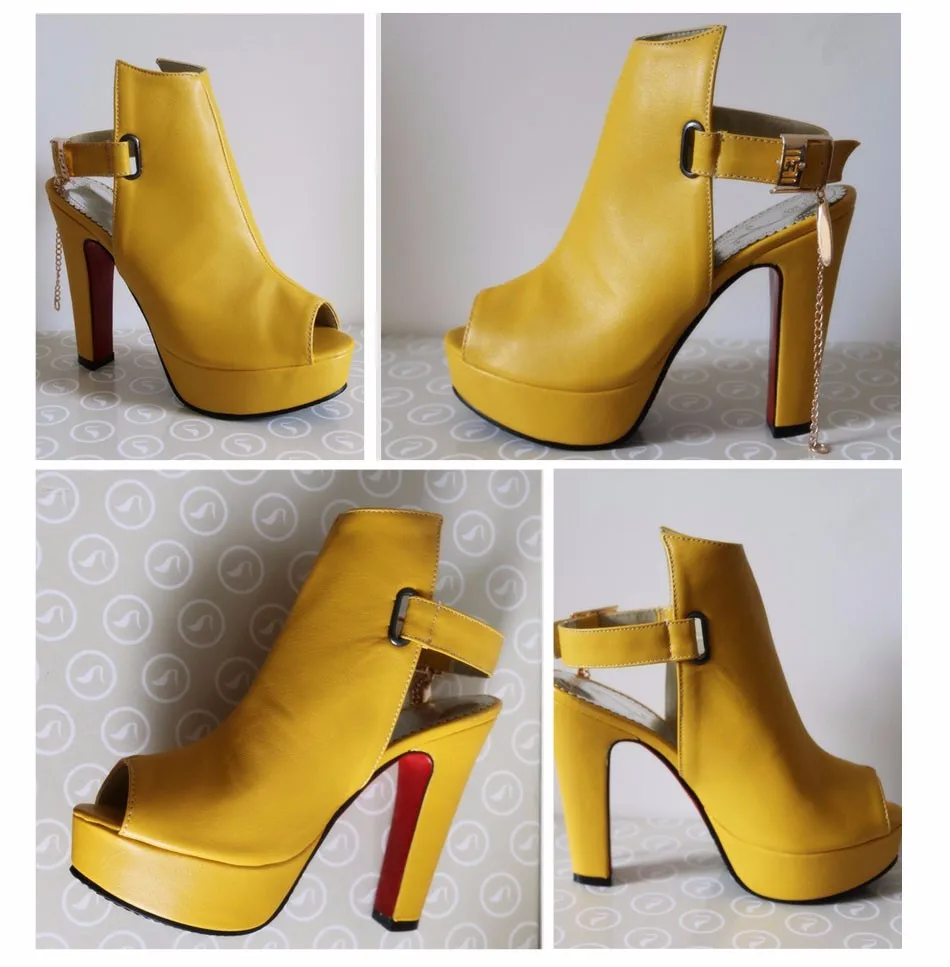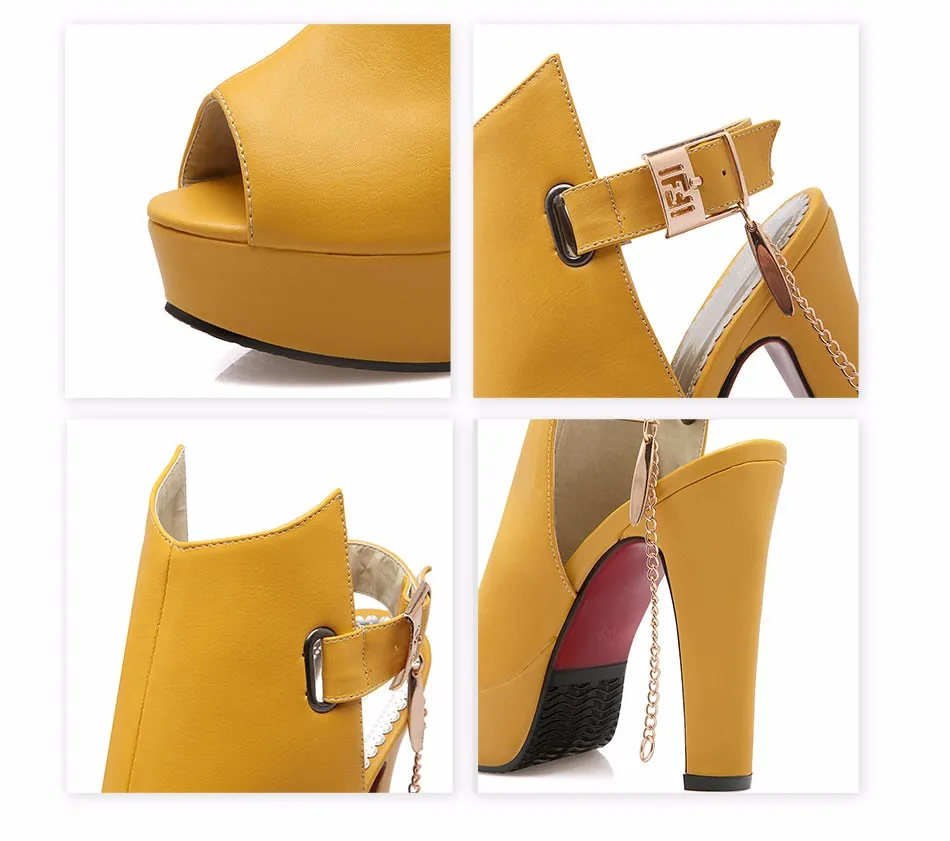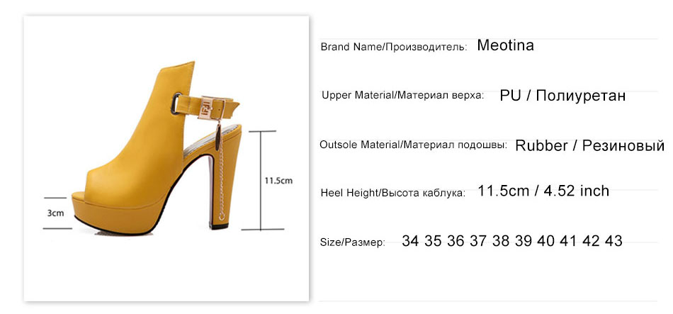 Meotina Shoes Women High Heels Pumps Spring Peep Toe Gladiator Shoes Female Chains Sequined High Heels Platform Shoes Yellow 43