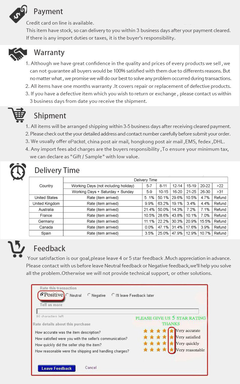 We will have a Chinese new year holidays from Jan.23 —- Feb.15,2019. During this time, we only accept orders but not ship them.We will do shippment in turns after the holidays!!!!! Please forgive us for the inconvenience caused to you!!! thank u and happy new year!
