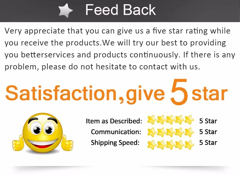2. Very appreciate that you can give us a five star rating while you receive the products. Thank you very much!