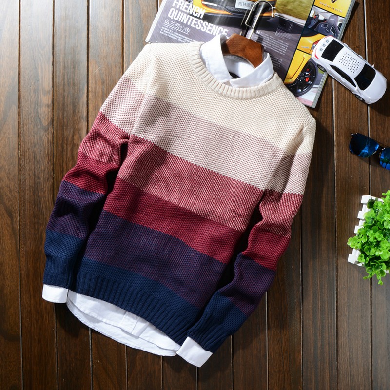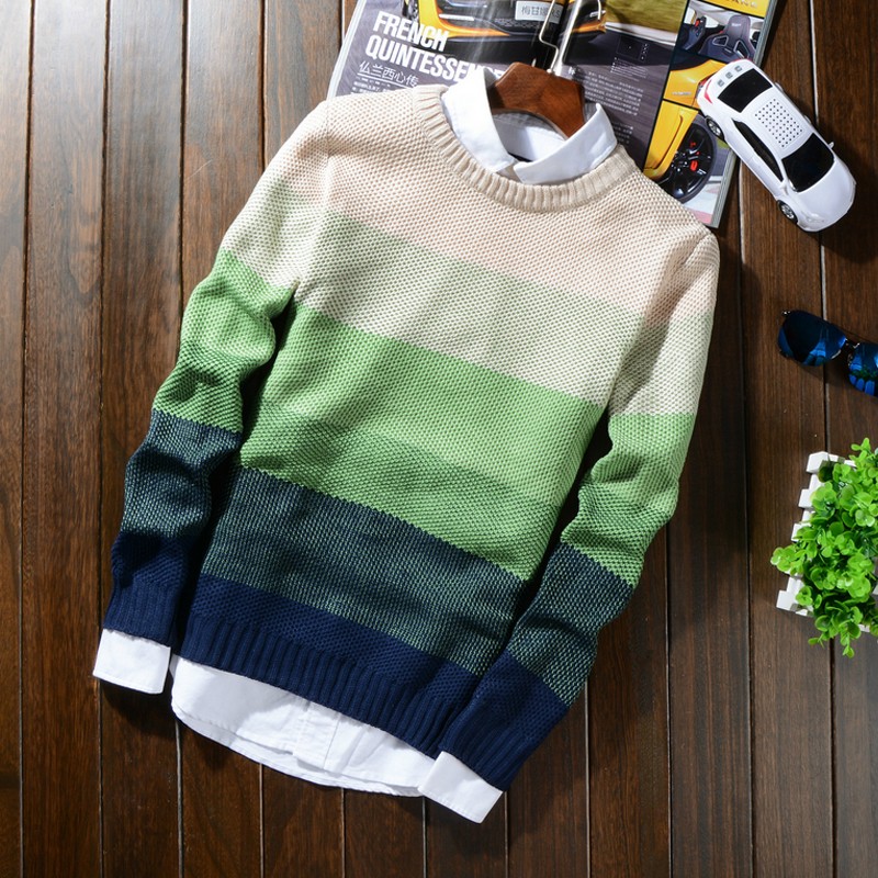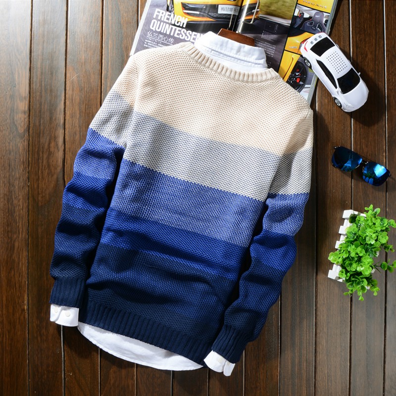 2016 Autumn Winter Wool Striped Sweater Mens Brand Casual Blue Male Sweater O-Neck Slim Fit Knitting Mens Sweaters Pullovers 50