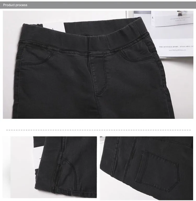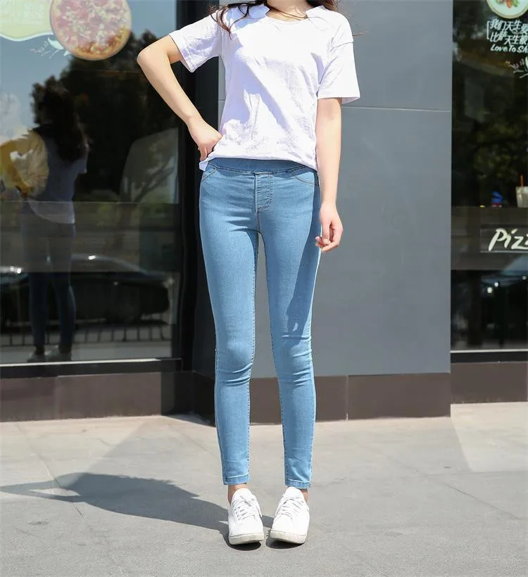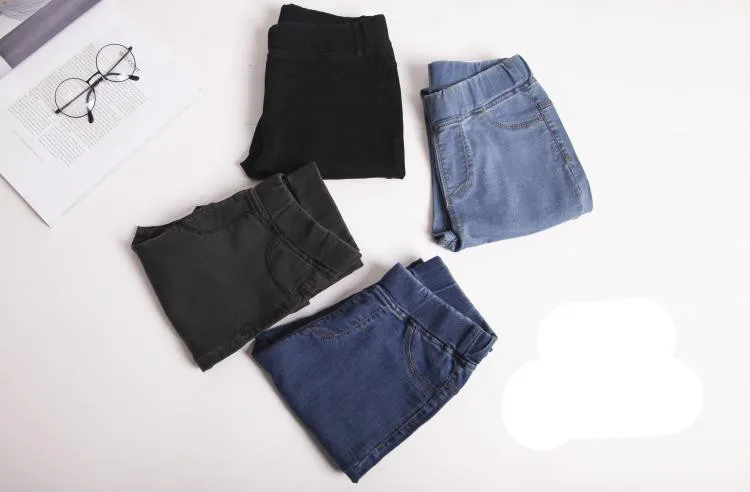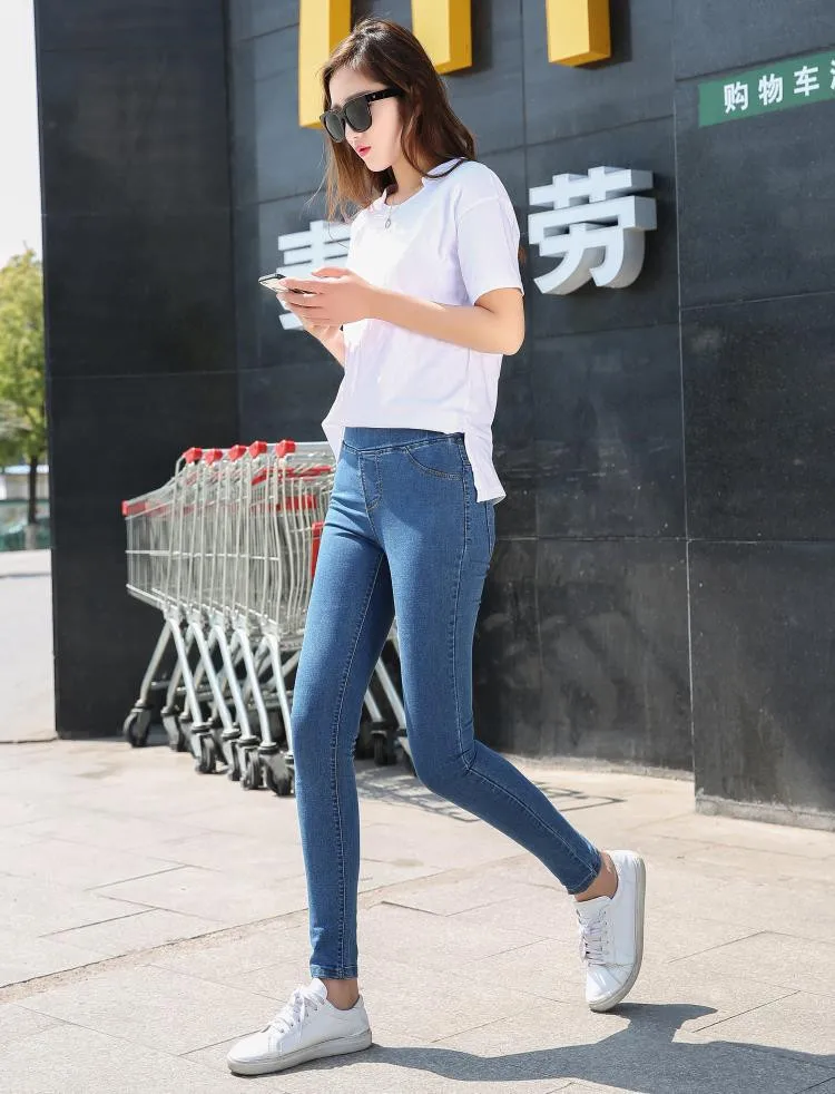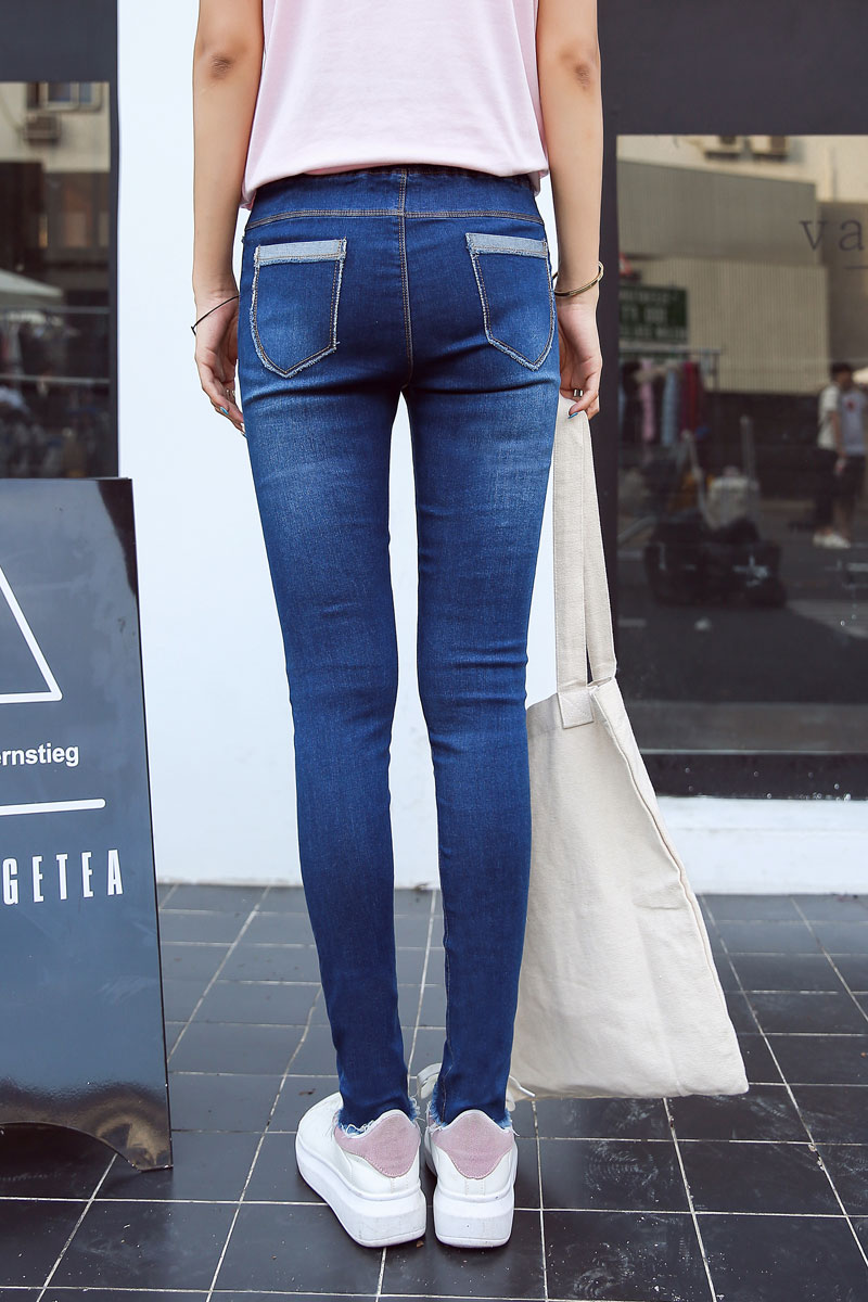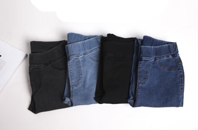 Material: elastic cotton denim Color: light blue, dark blue Size: S/M, L, XL, XXL (elastic) *Note: It ‘s Asia size, will smaller than European sizes. and i t ‘s nine pants style, to the ankle. Will short than full length pants. Please reference size chart carefully! Thanks! (There may be 1-3 cm error, and may be a bit off color, if you mind, please cautious to buy! Thanks !)