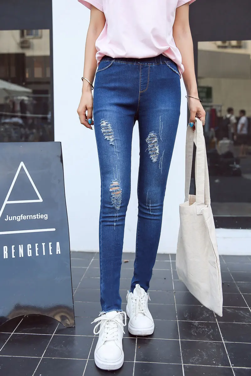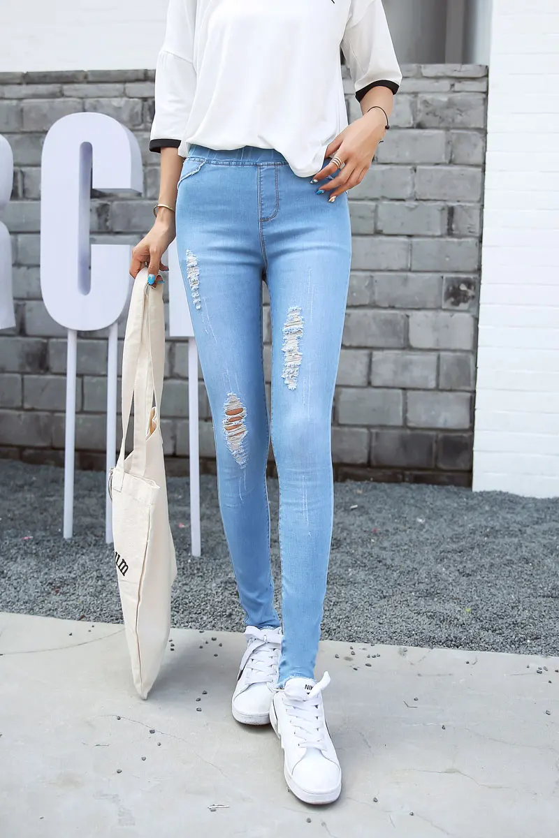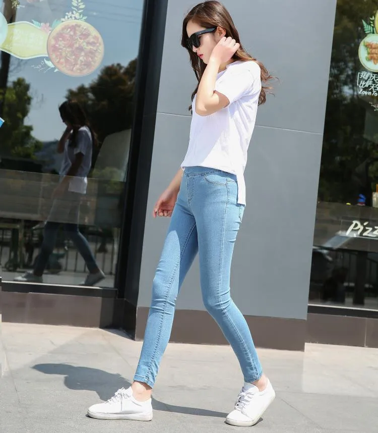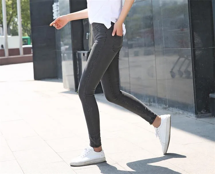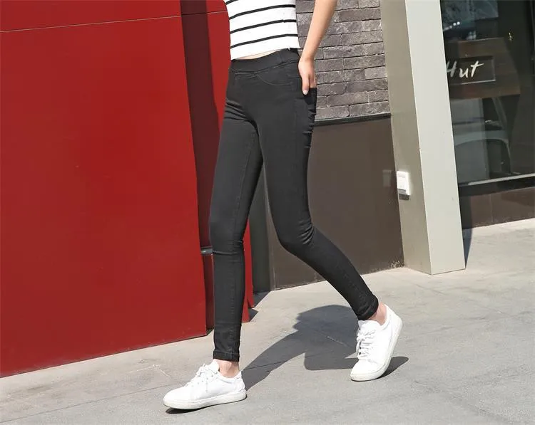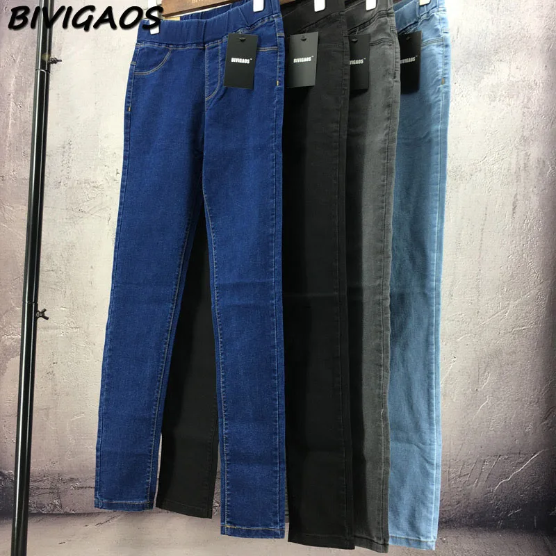 Material: elastic cotton denim Color: light blue, dark blue Size: S/M, L, XL, XXL (elastic) *Note: It ‘s Asia size, will smaller than European sizes. and i t ‘s nine pants style, to the ankle. Will short than full length pants. Please reference size chart carefully! Thanks! (There may be 1-3 cm error, and may be a bit off color, if you mind, please cautious to buy! Thanks !)