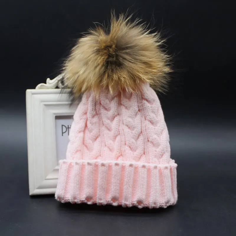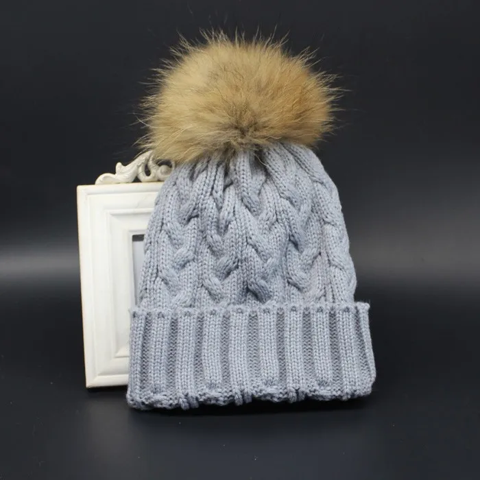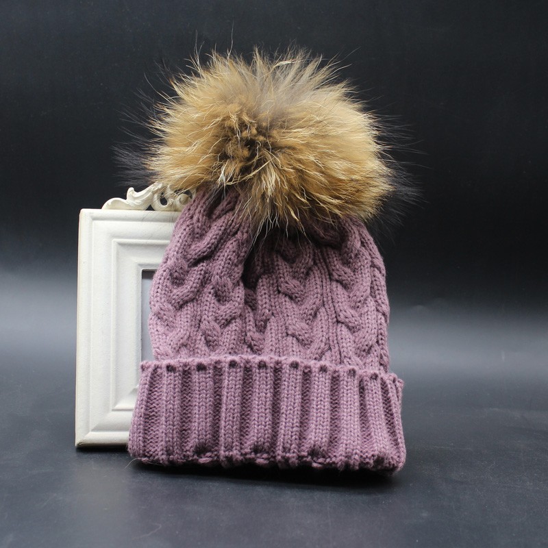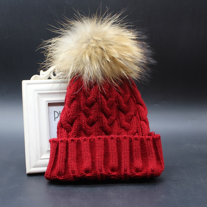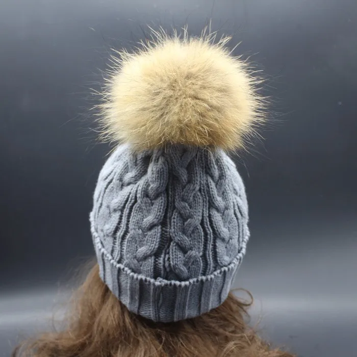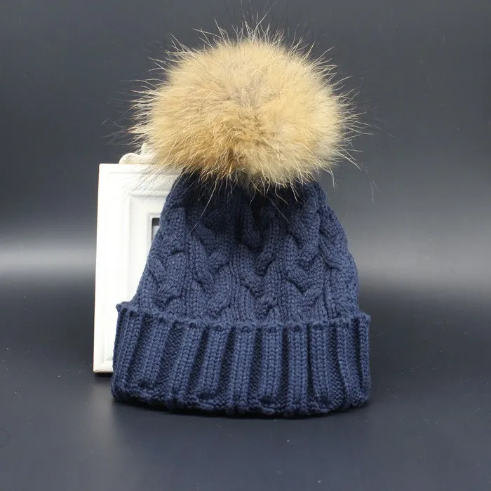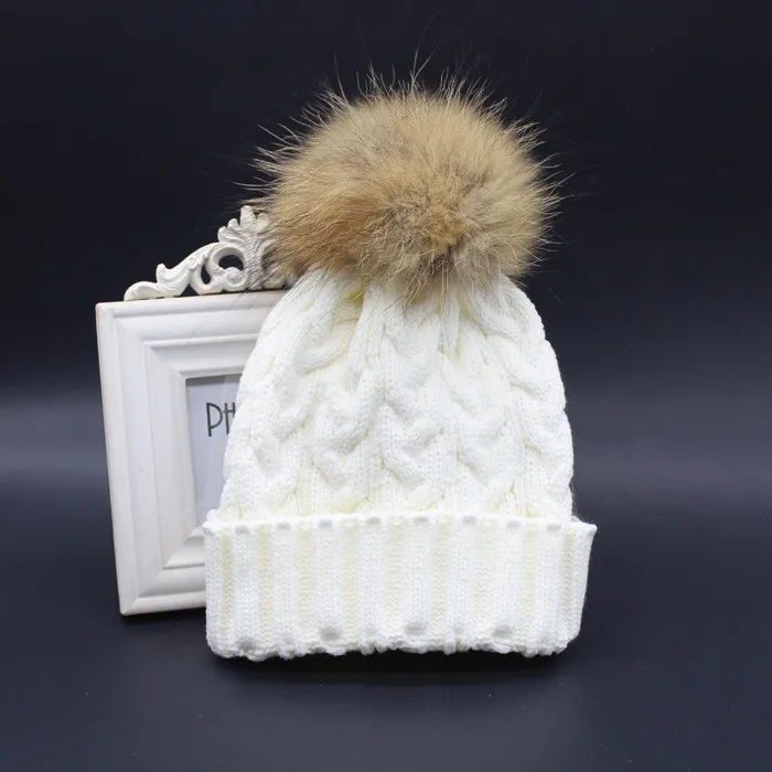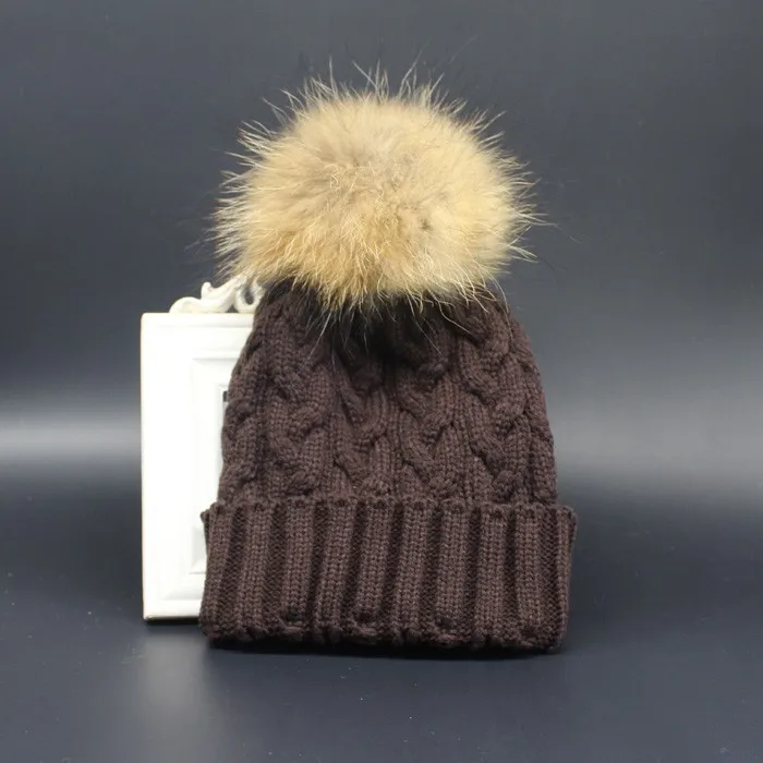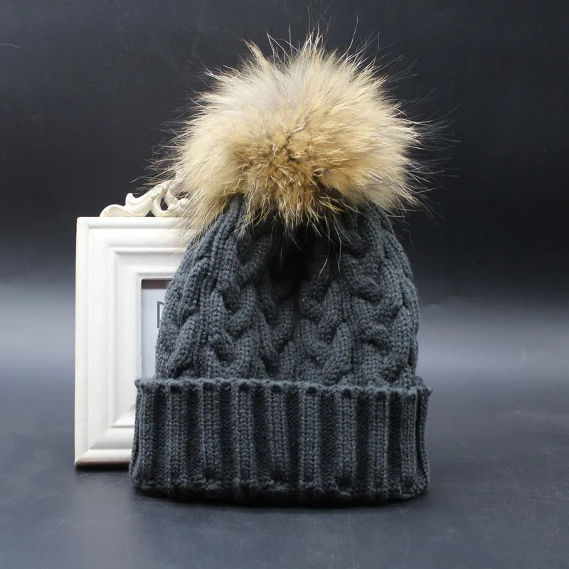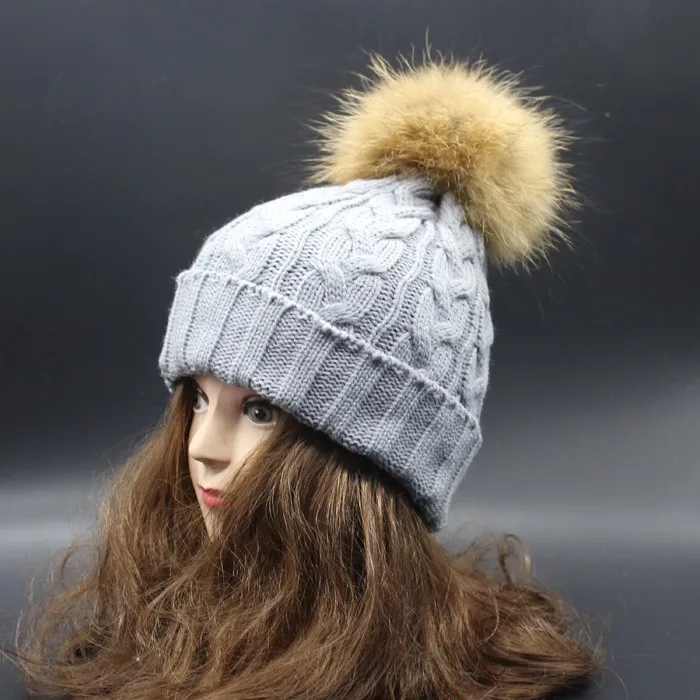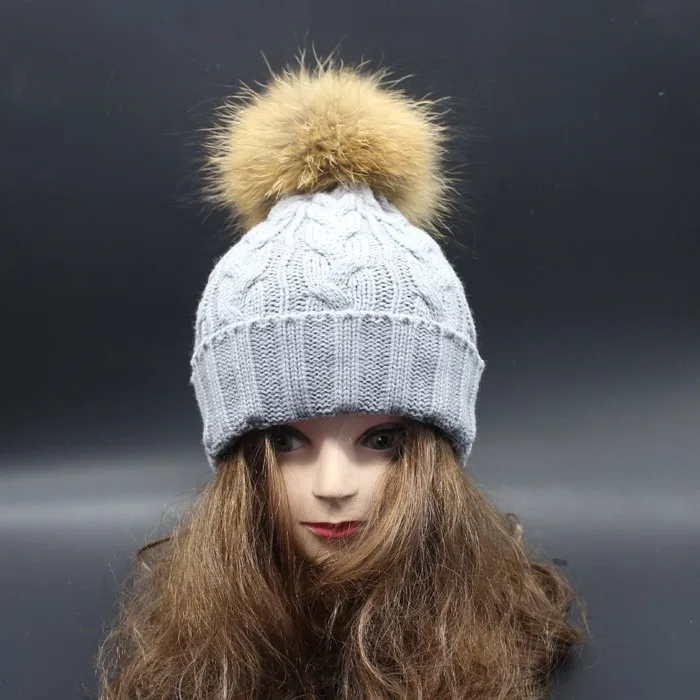 2018 Winter Autumn Wool Knitted Beanies Women’s Hat 100% Real Raccoon Fur Pompom Beanie Hats For Women