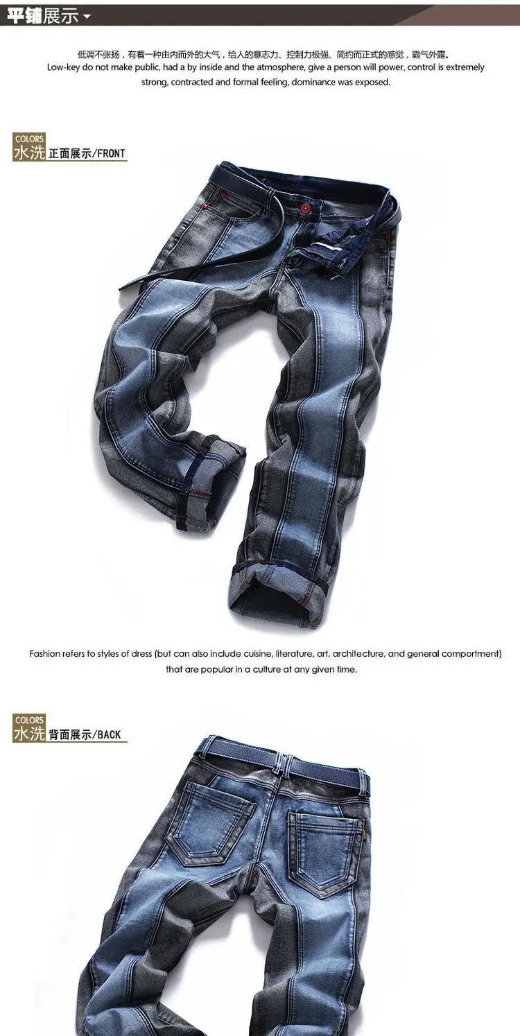 2017 Plus size 44 High quality free shipping Color Block Men’s Jeans pants Slim straright Fashion Brands Rock Elastic designer jeans for Men