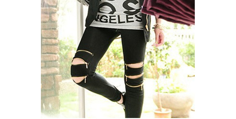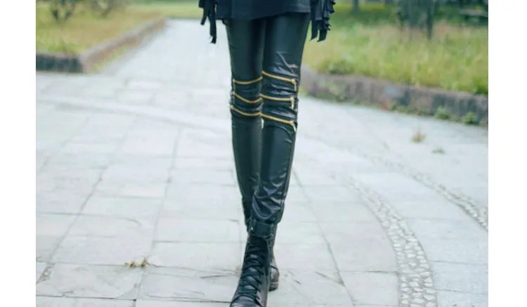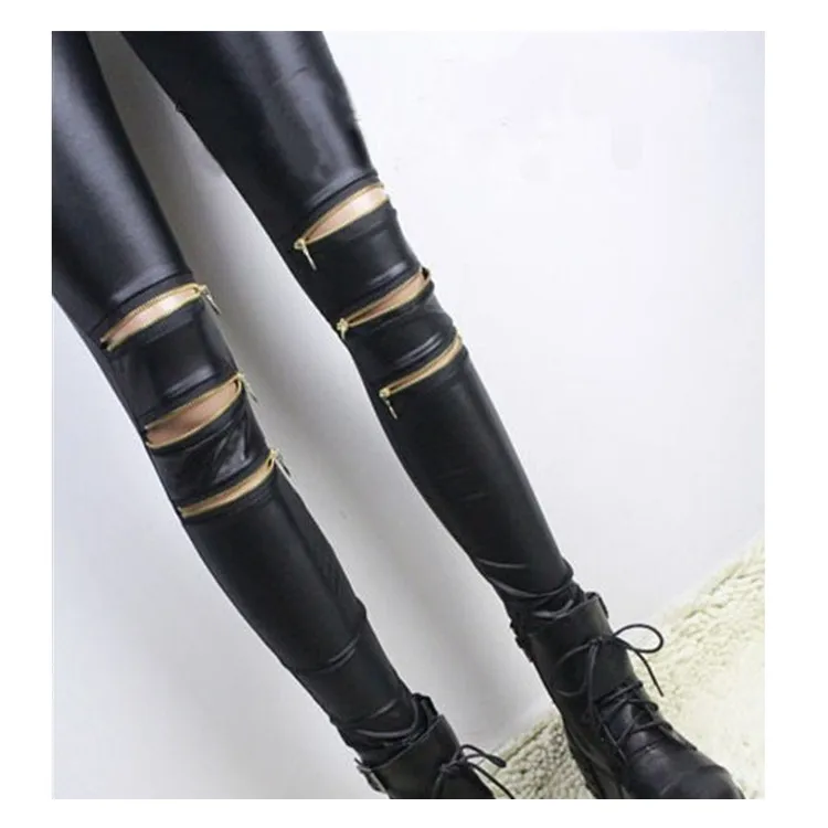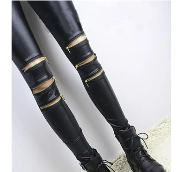 Women Leggings with three zippers patchwork gym legins punk rock trousers Skinny pants black fittness new style
