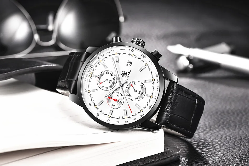 BENYAR Fashion Casual Mens Watches Luxury Brand Leather Business Quartz Watch Men Waterproof Wristwatch Relogio Masculino