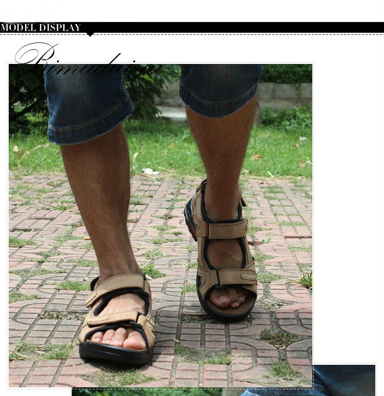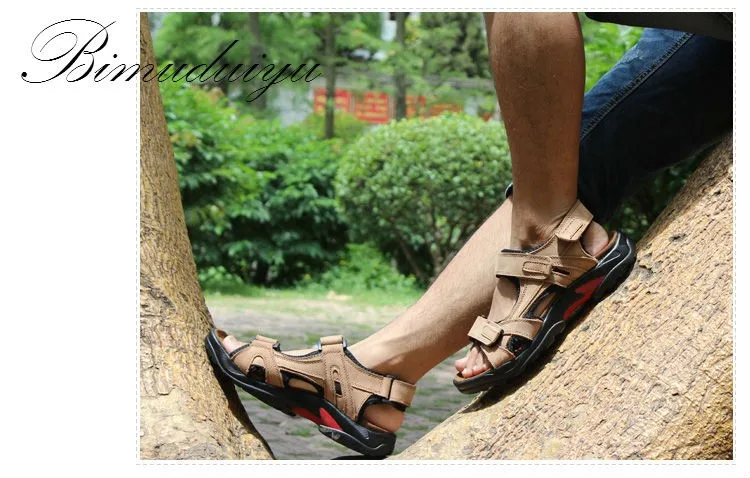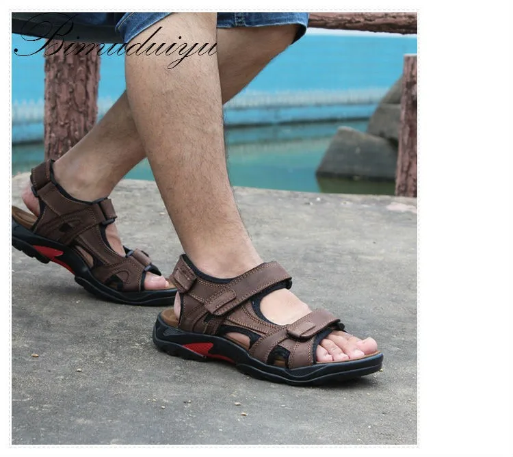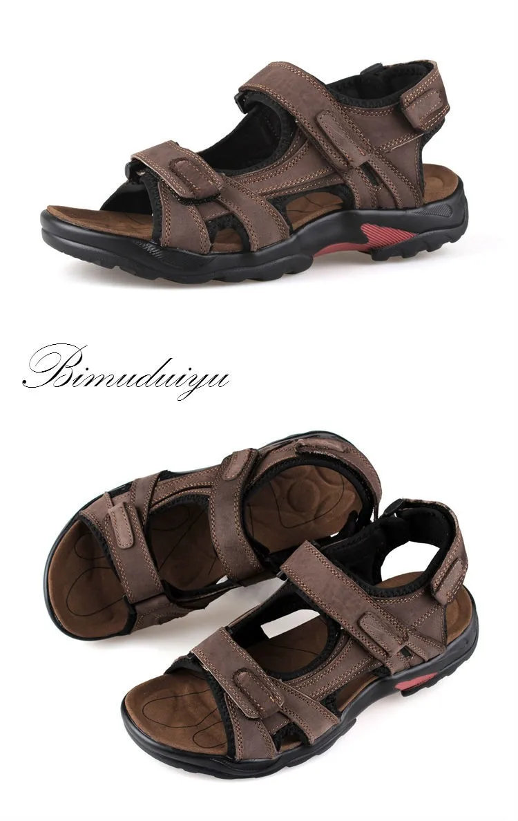 BIMUDUIYU Quality Mens Sandals Genuine Leather Fashion Summer Leisure Beach Men Shoes Casual Shoes Large Size 38-48 Men’s Sandals