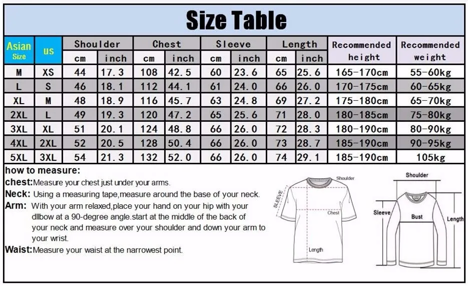 Please measure the clothes you usually wear ,not your body .then choose size according to the table. All the size we have is Asian size ,please choose 1-3size larger than your wear. If you are not certain about the size, Please tell us your weight (kg)and height(cm) Thank you !