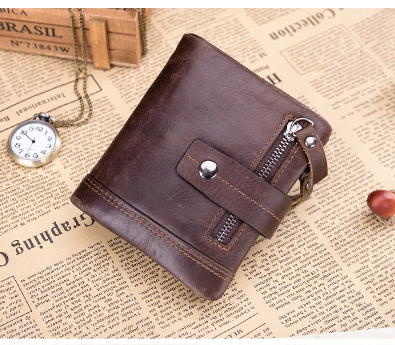 BULL CAPTAIN 2017 Genuine Leather Men’s Wallet Bifold Purses Multifunction Male Purse Card ID Holder European Style Zipper Hasp