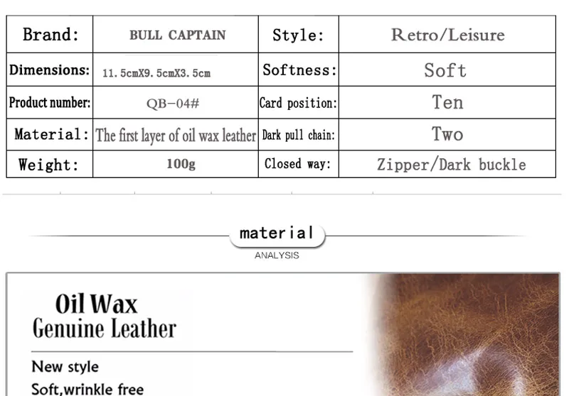 Be the first to review “BULL CAPTAIN 2017 Genuine Leather Men’s Wallet Bifold Purses Multifunction Male Purse Card ID Holder European Style Zipper Hasp” Cancel reply