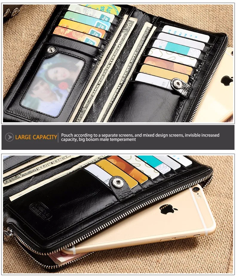 CONTACT’S 2018 New Classical Genuine Leather Wallets Vintage Style Men Wallet Fashion Brand Purse Card Holder Long Clutch Wallet