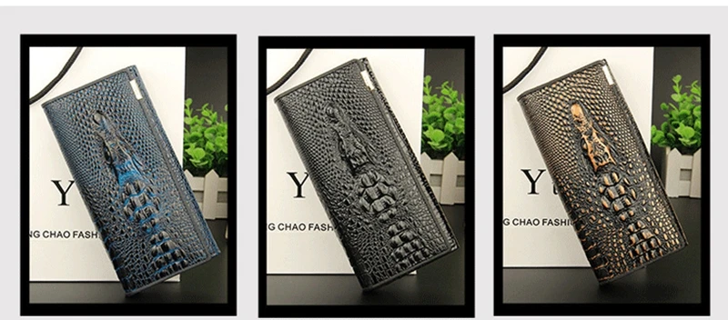 Genuine Leather Women Wallet crocodile head cowhide wallet fashion ladies wallet 3D long section designer trend woman wallet