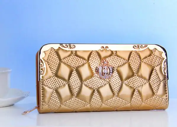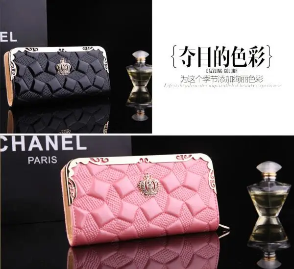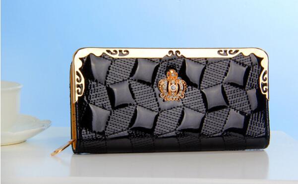 KUJING wallet high quality fashion Lingge women wallet free shipping crown patent leather multi-card bit cheap casual wallet
