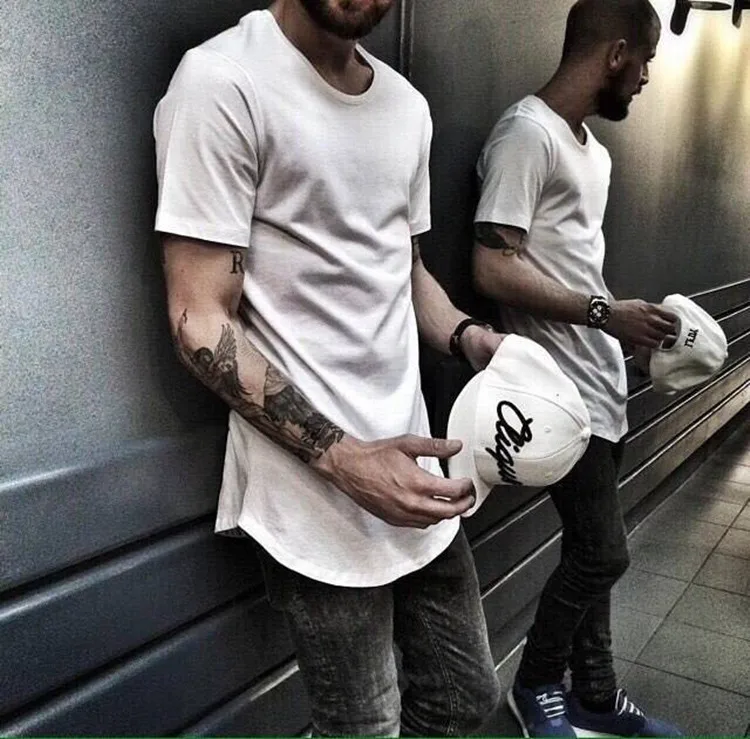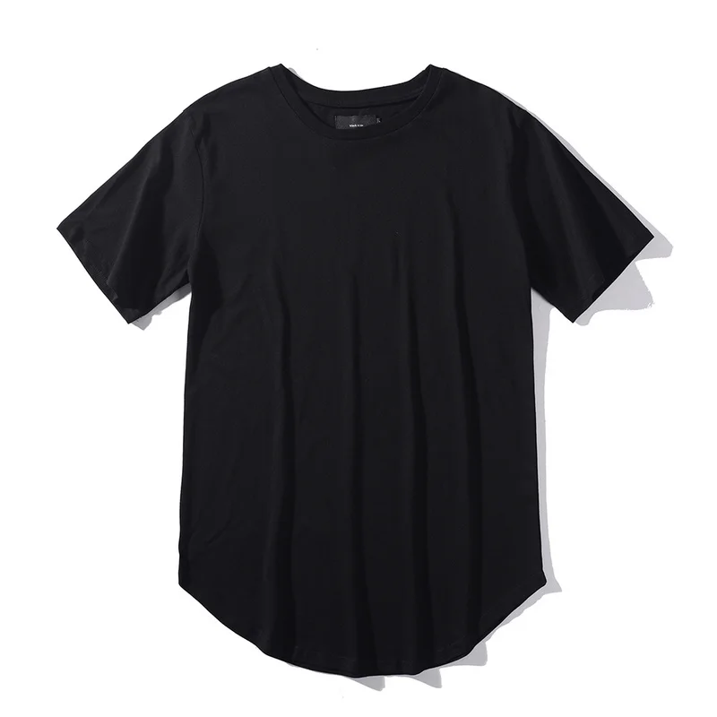 Man Si Tun Solid Color Curve Hem Casual Mens T-shirt Longline 2019 Summer Hip Hop T shirt Extended Street Tee Shirts for Men