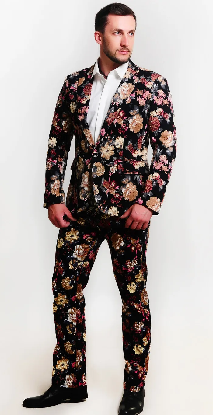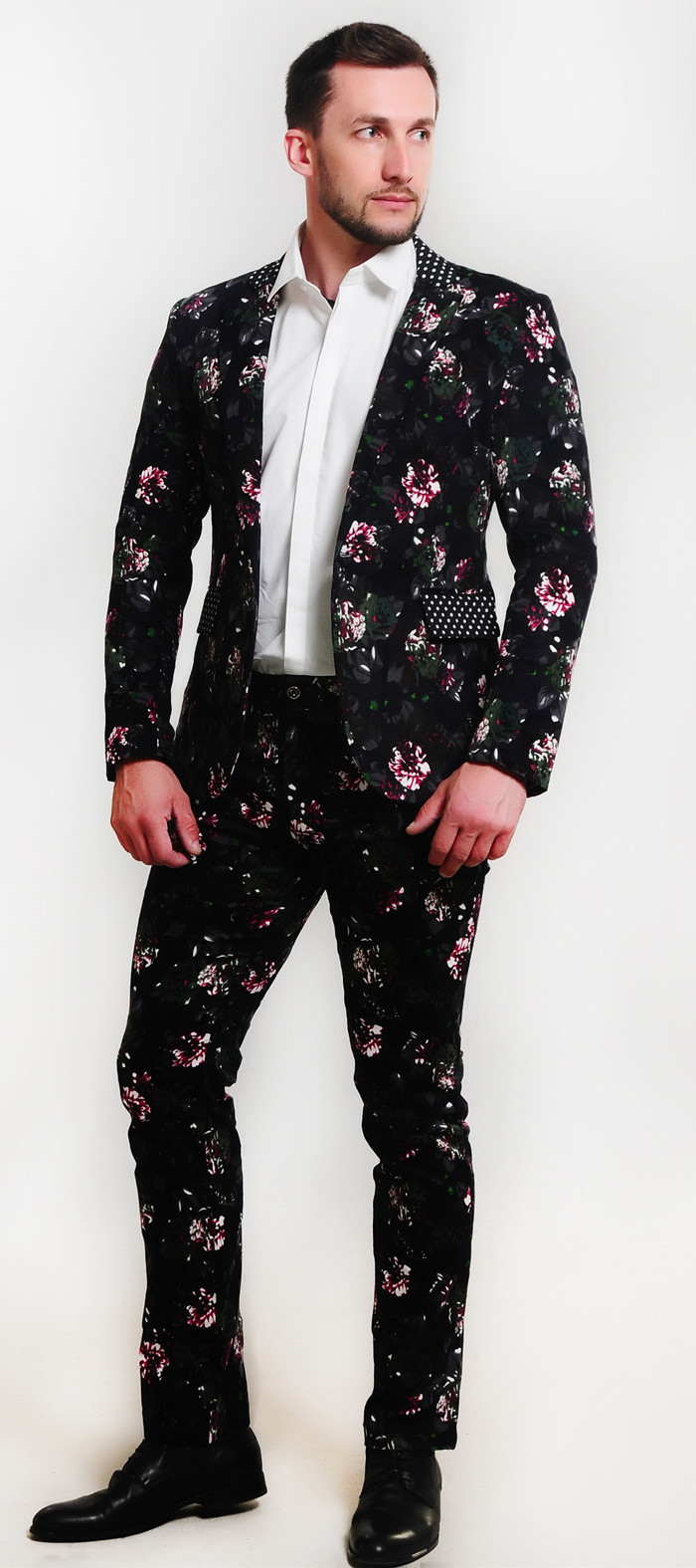 MOGU 2017 New Two Piece Men Suits Floral Print Cotton Fabric Men Suits Slim Fit Fashion Stylish Suits in Mens Clothing