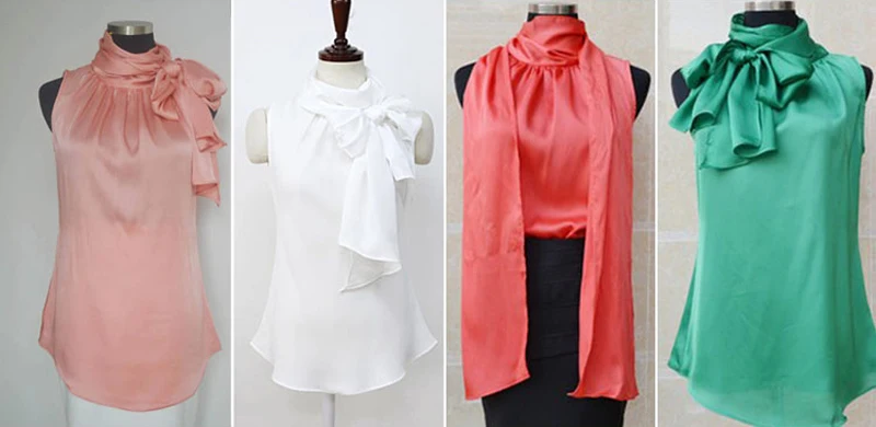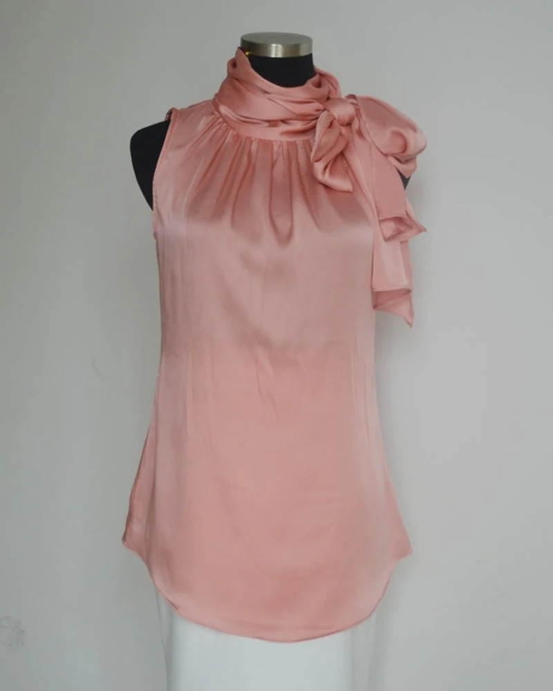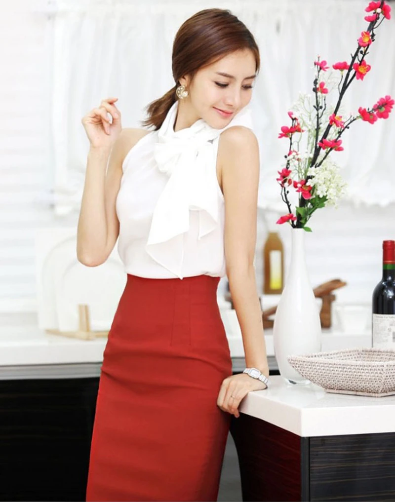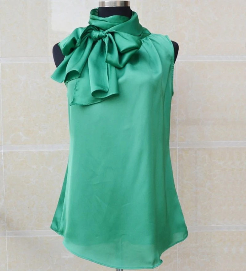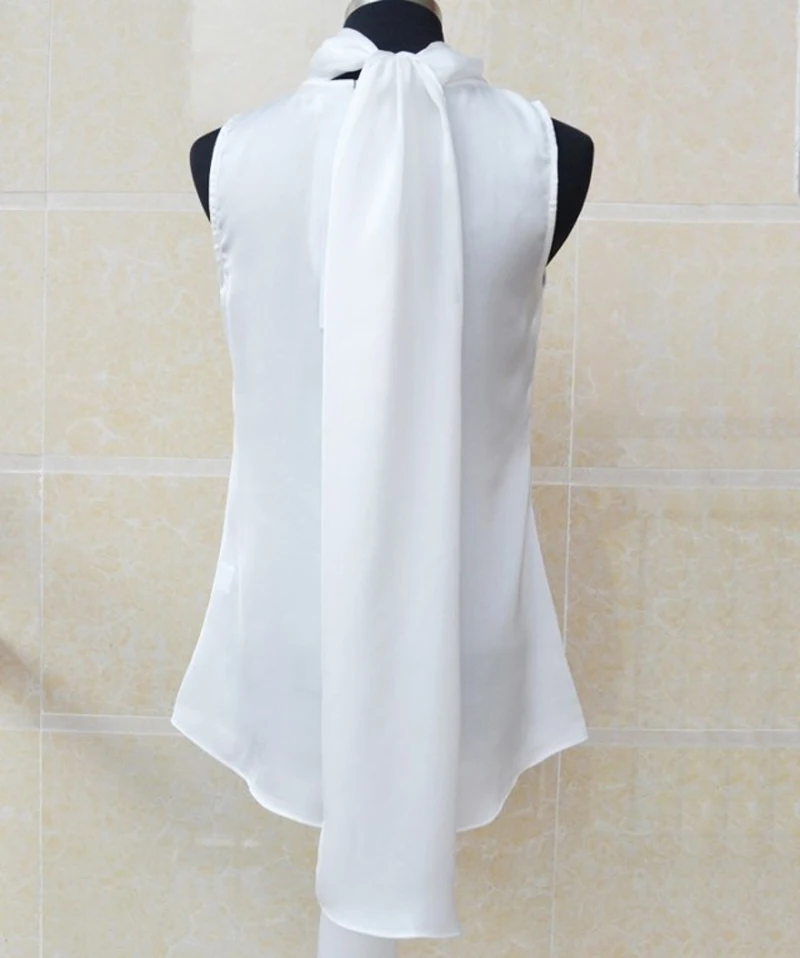 Nonis Women’s Blouses Sleeveless Bow Knot Office Work Wear Chiffon Shirts White Pink Red Cool Summer Tops Femme Blusa Plus Size