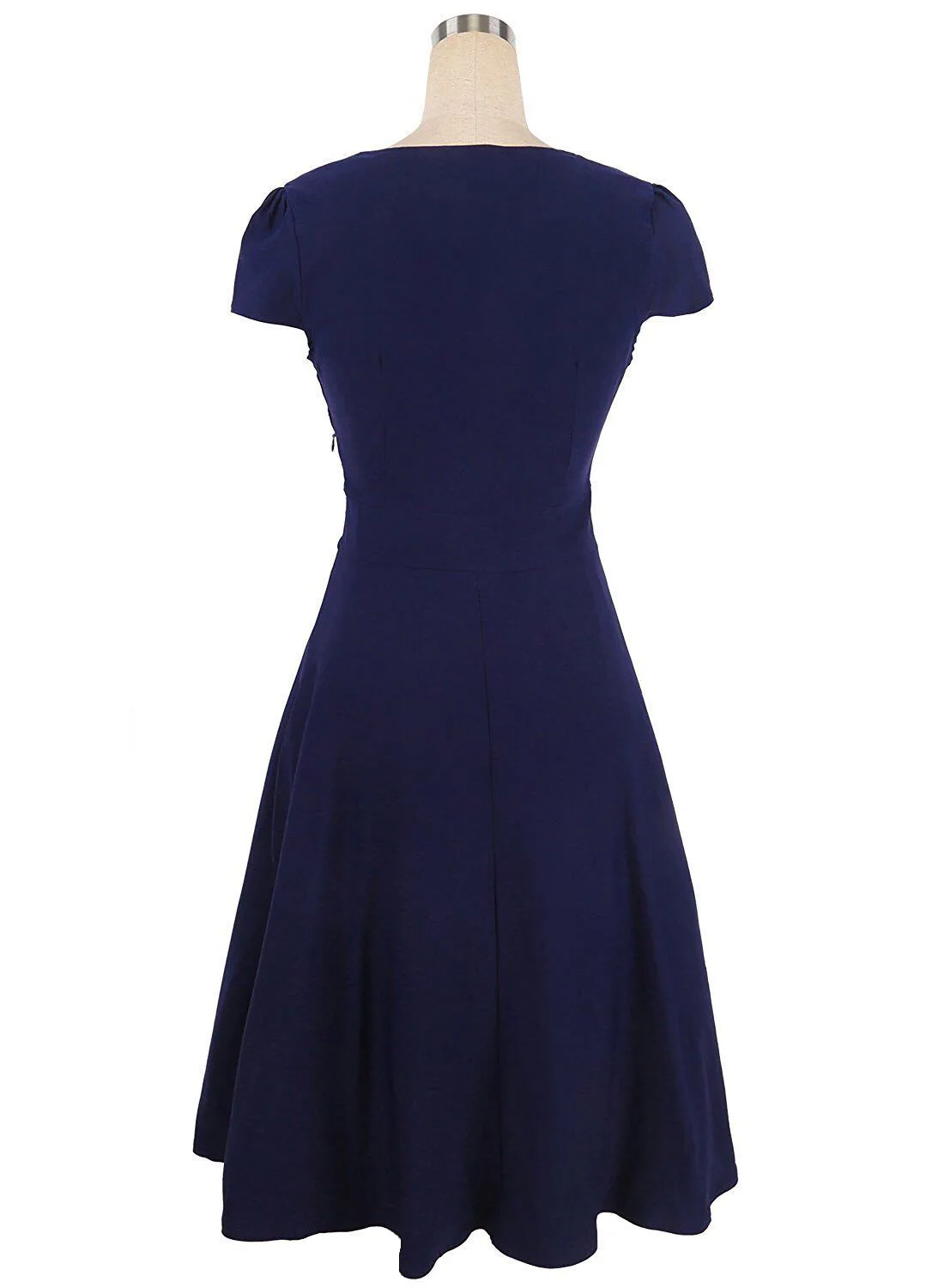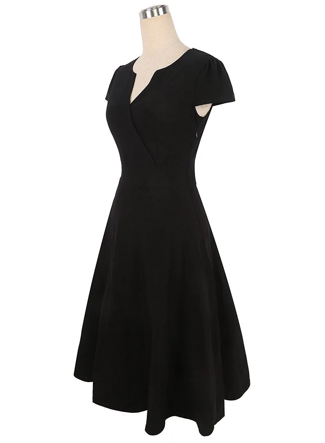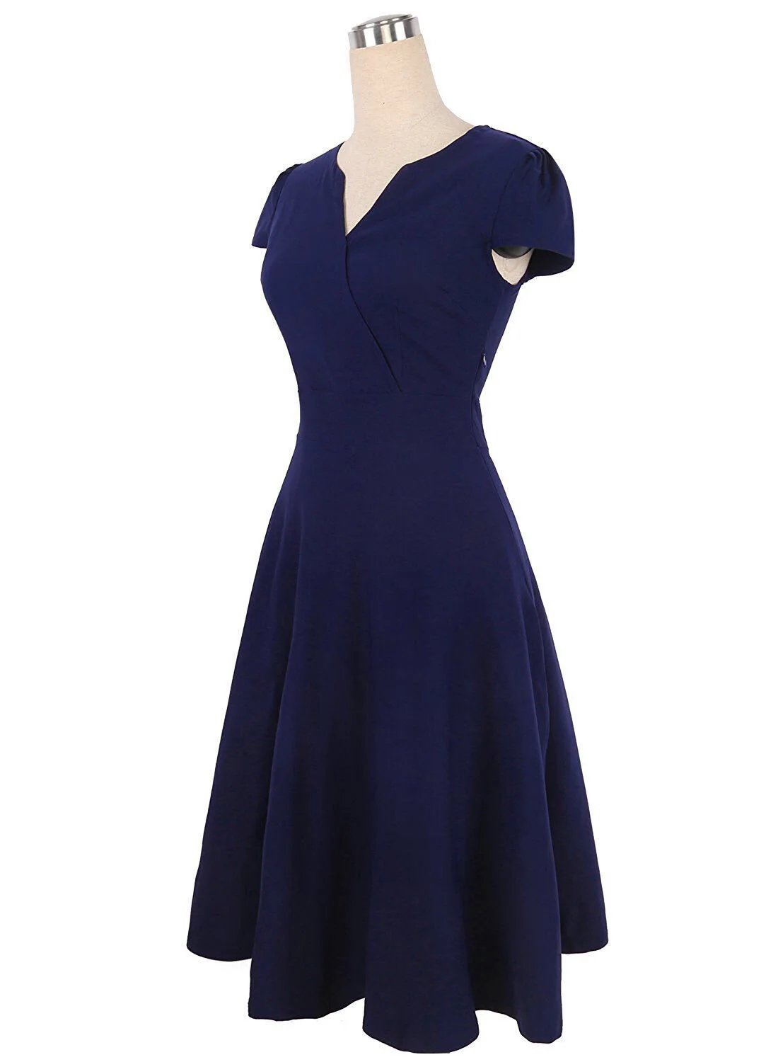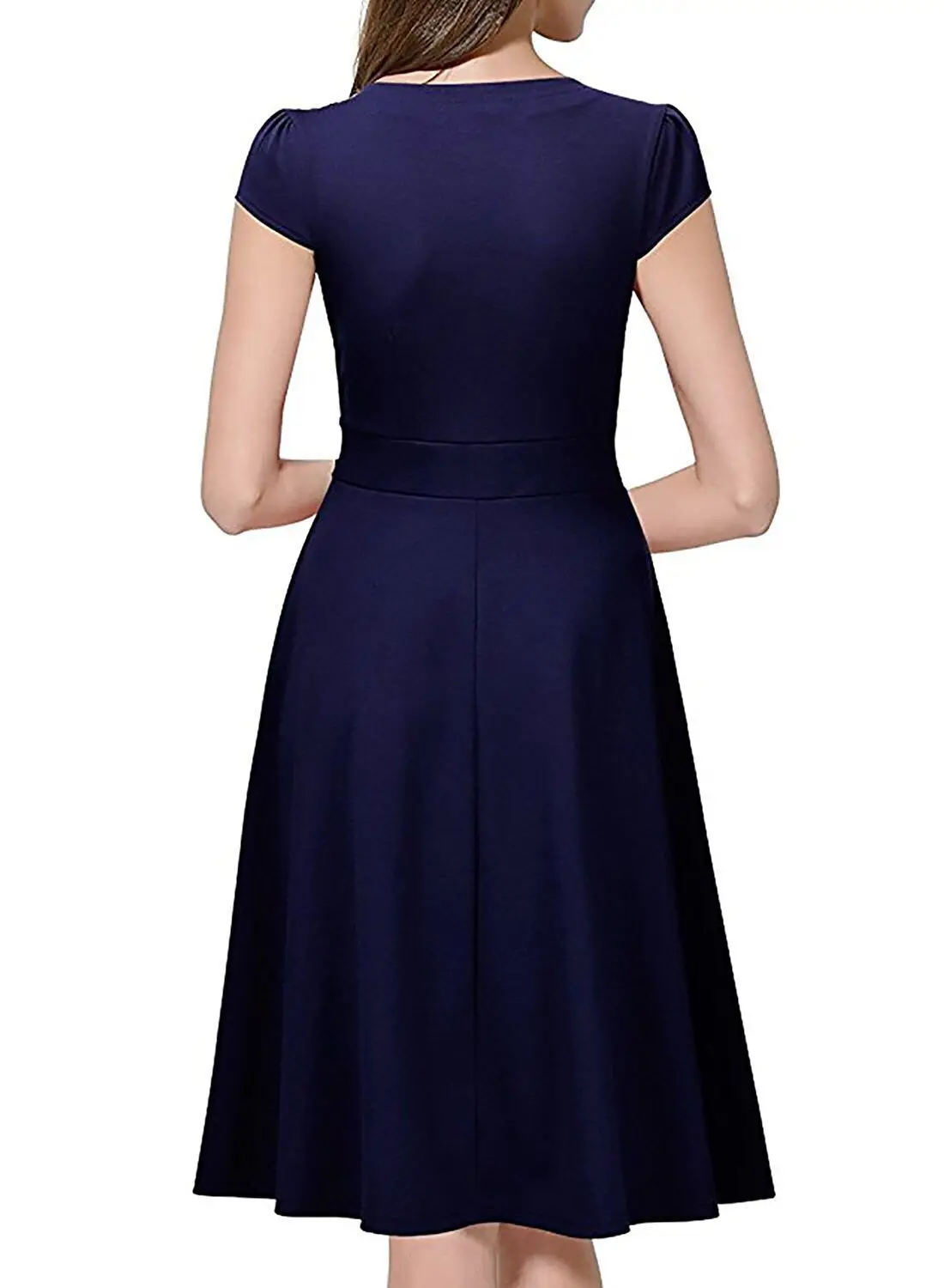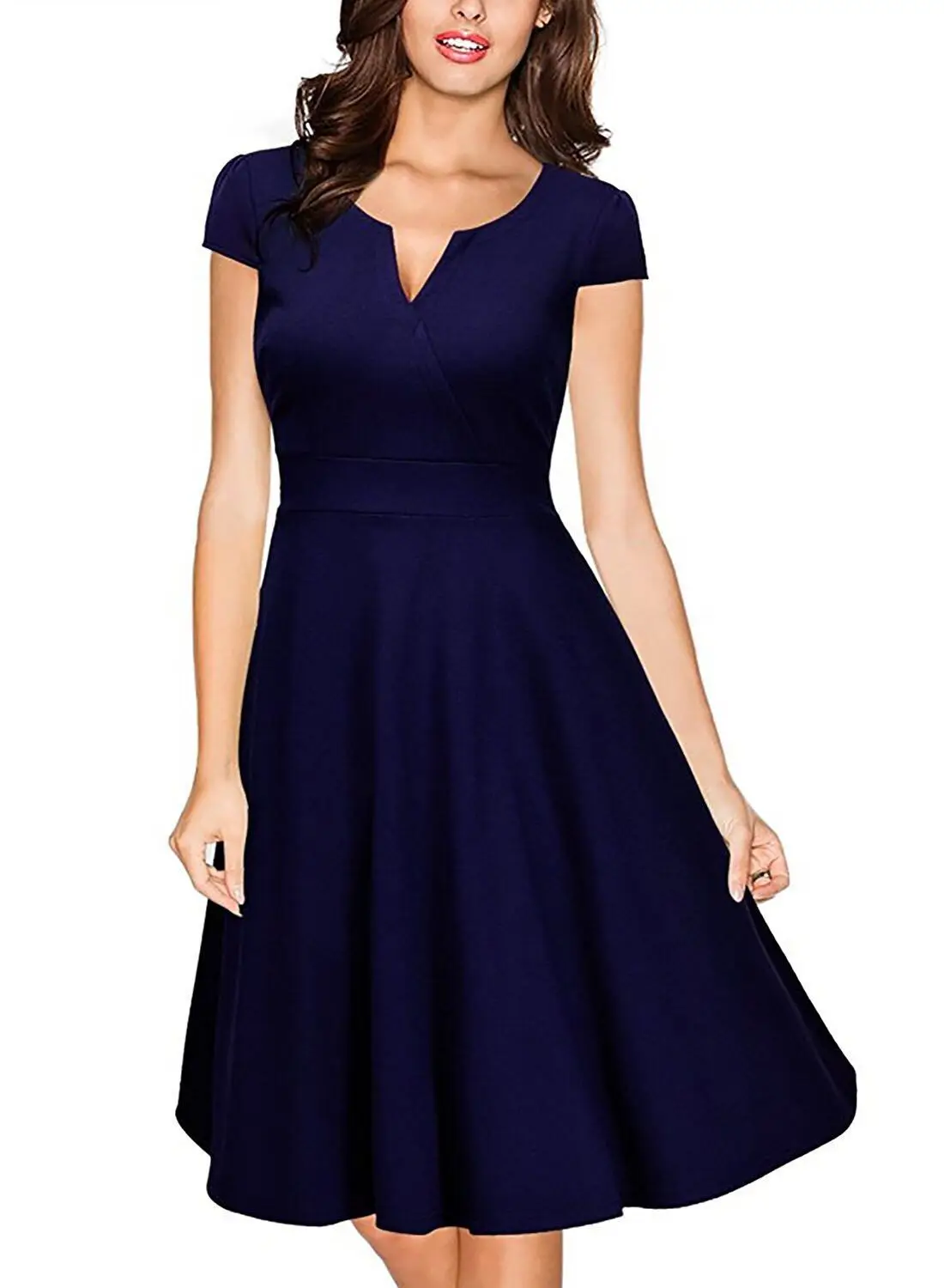 Oxiuly Audrey Hepburn 50s Vestidos Womens Dress Formal V Neck Casual Office Wear Working Bodycon Knee Length A-line Dresses