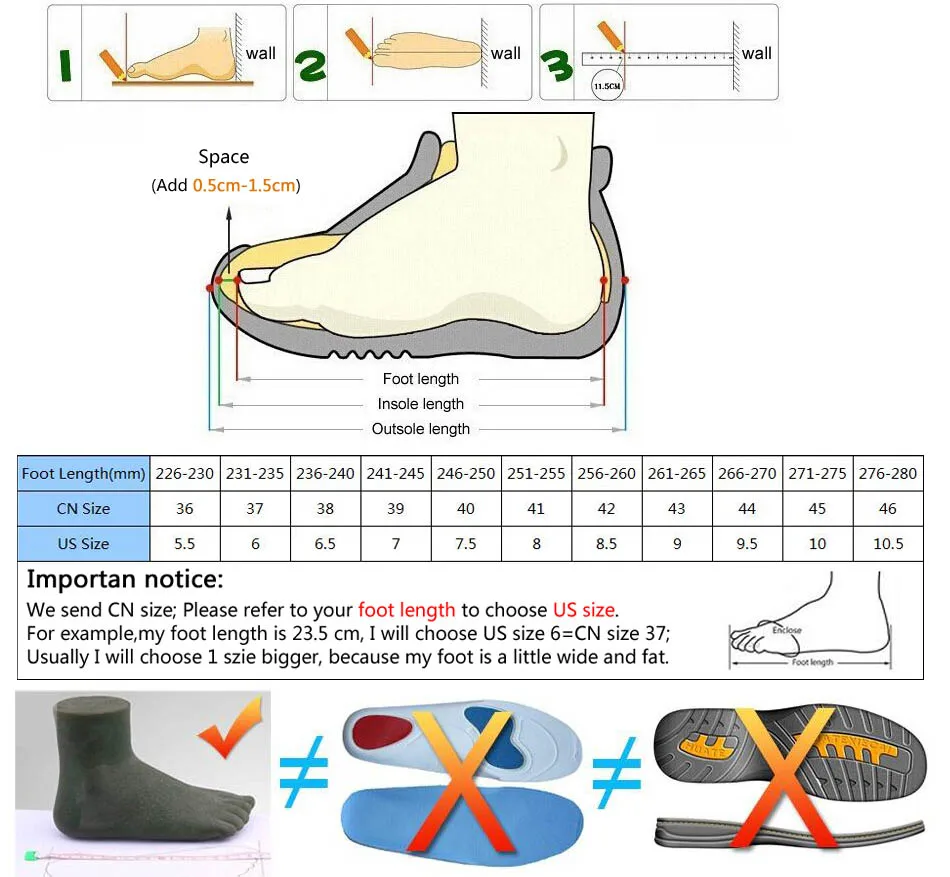 Dear my friend: 1: This shoe is produced by Chinese Shoe Size Standard, so no matter what country you come from , please forget shoe size chart in your own country , all you need to do is measure your bare foot length using a ruler , find your own shoe size according to the Chinese Shoe Size Chart in this page . 2: We aim for star service and want you to be happy.