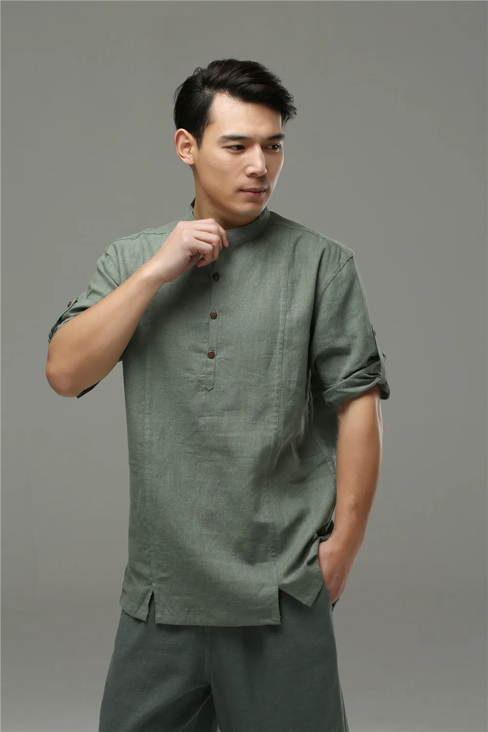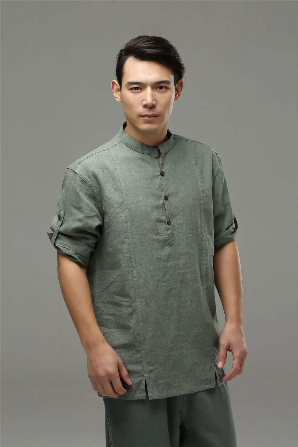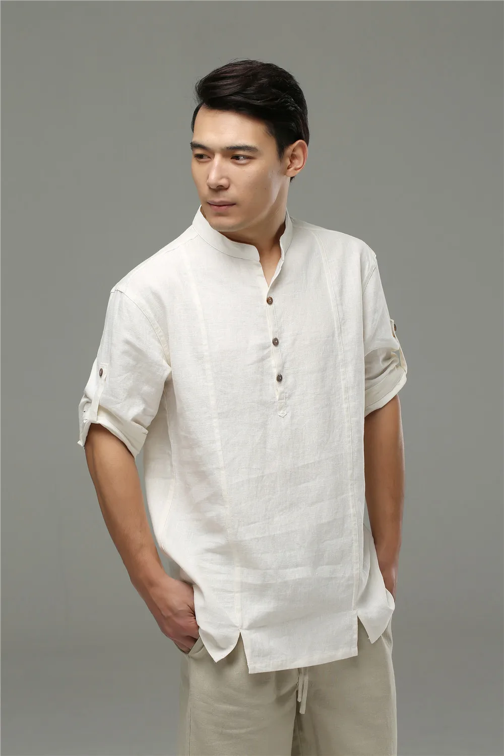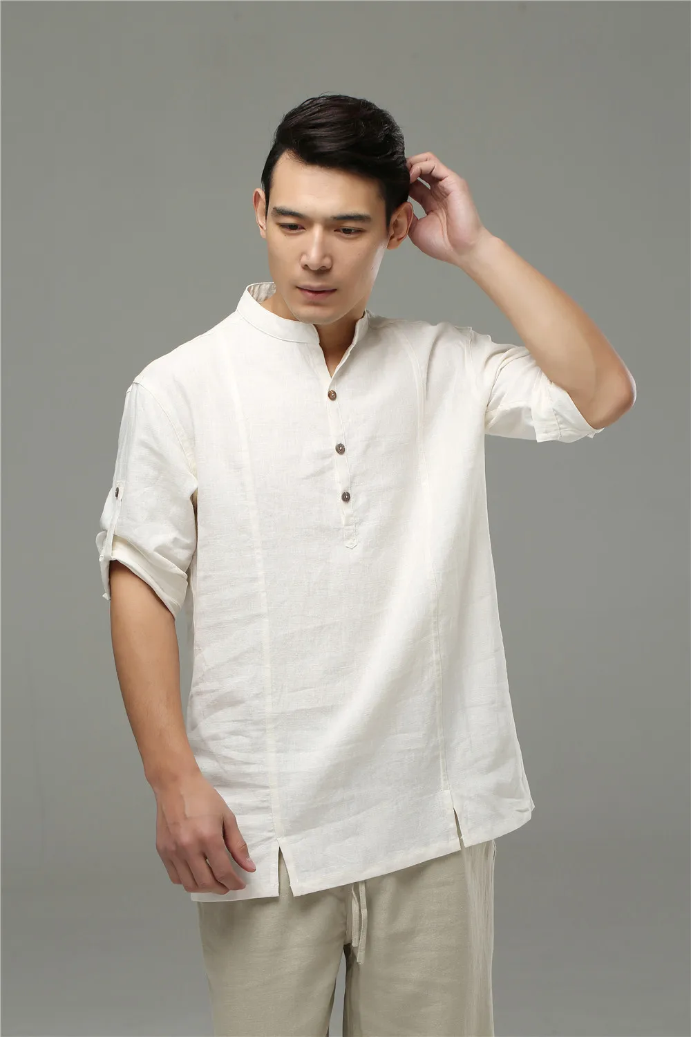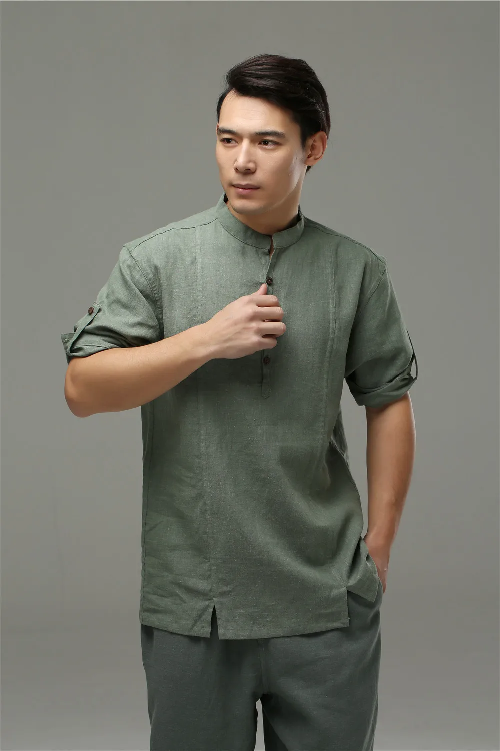 Summer fashion high quality pure linen men’s shirts plus size casual men’s shirt half sleeve european size men shirt 3 colors