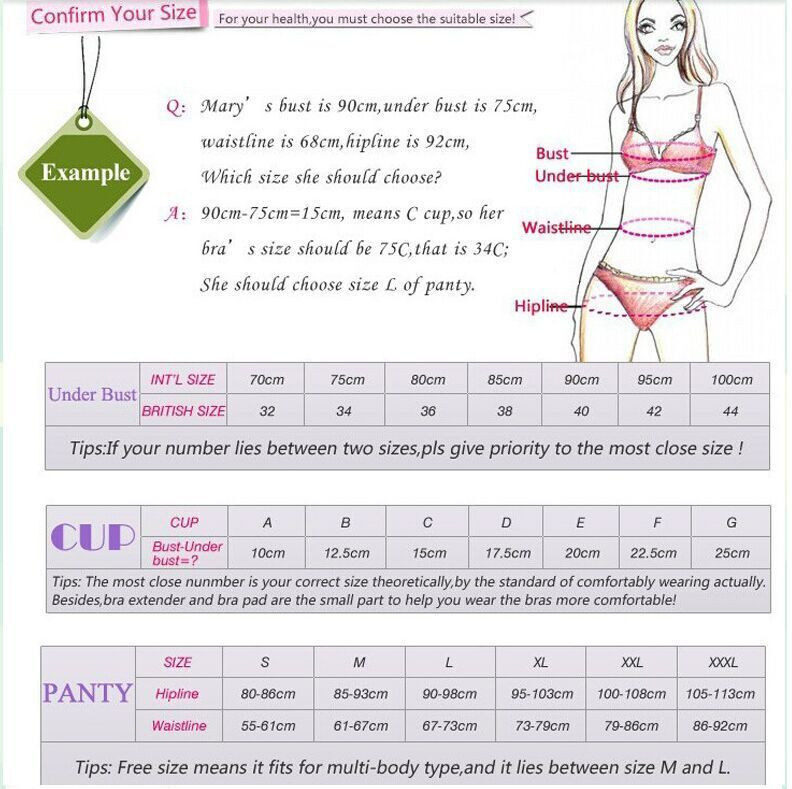 75BCD bra tile most outer buckle 62cm M thong tiling waist 30cm, crotch length 18cm 80BCD bra tile most outer buckle 70cm L thong tiling waist 32cm, crotch length 20cm 85BCD bra tile most outer buckle 72cm XL thong tiling waist 33cm, crotch length 21cm