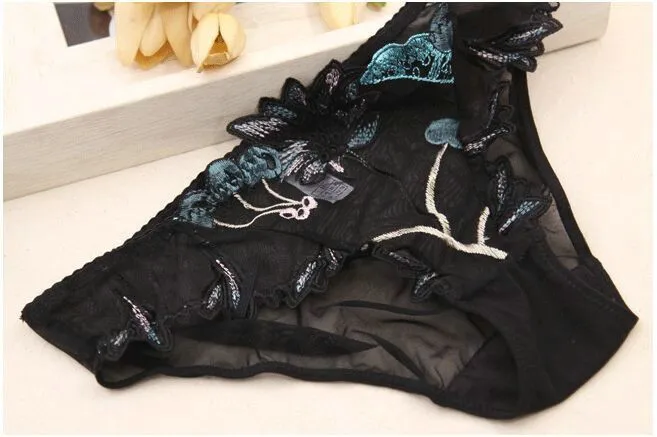 F ree shipping Flower gauze lace embroidery ultra-thin transparent sexy bra underwear set navy blue blackUS$ 16.50/piece |