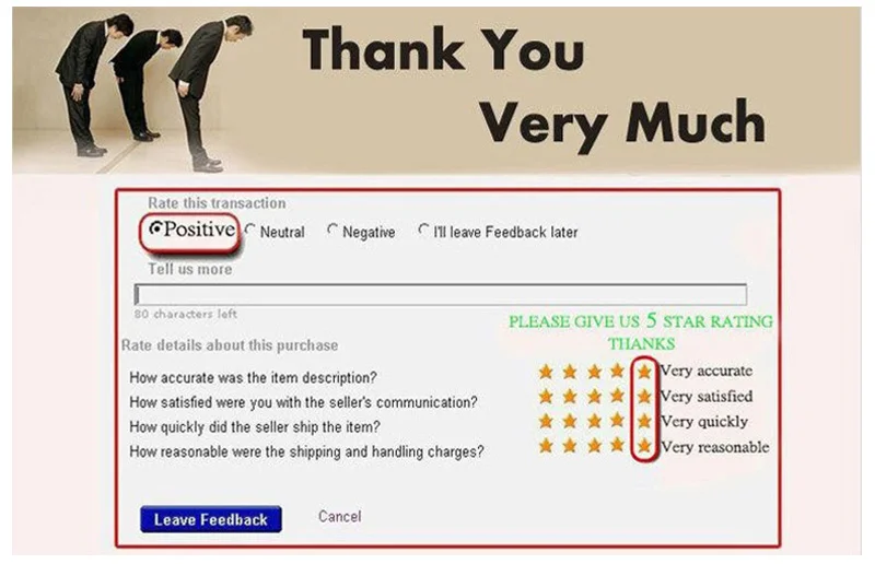 1. If you are satisfied with our products and services, please leave your positive feedback and 5 stars for the detailed rating of your order. Once you show us the screenshot of both 5 stars , we will give you 2% DISCOUNT for your next order.