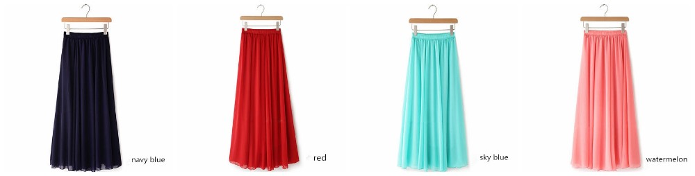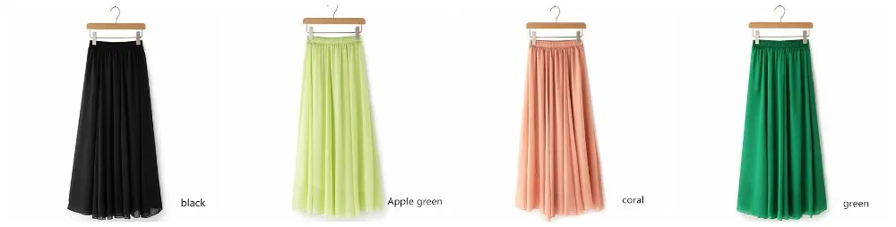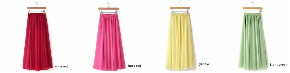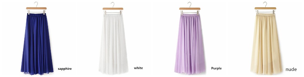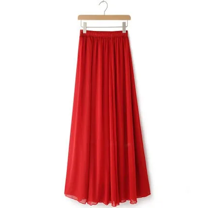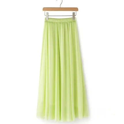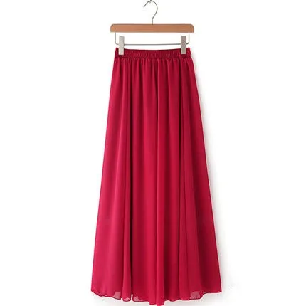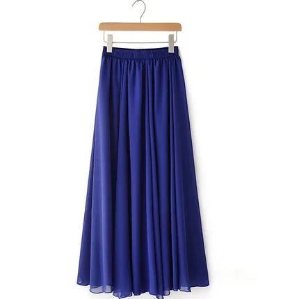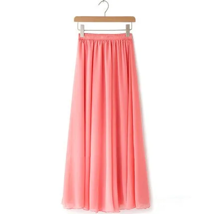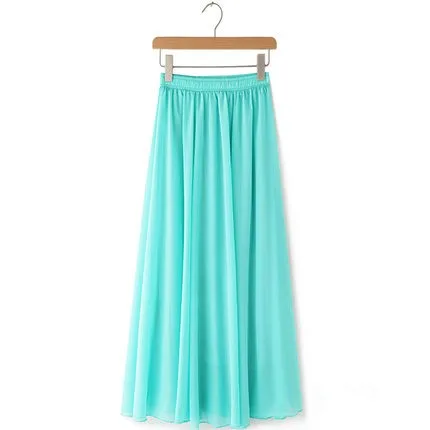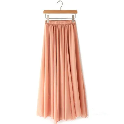 Women Chiffon Maxi Skirts Candy Color Pleated Women Skirts 2018 Summer Skirts in floor 80,90,100cm length 19Colors long skirt